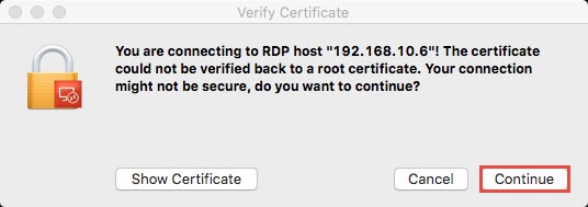 5. After starting, you’ll be asked for verifying certificate so just click on Continue.