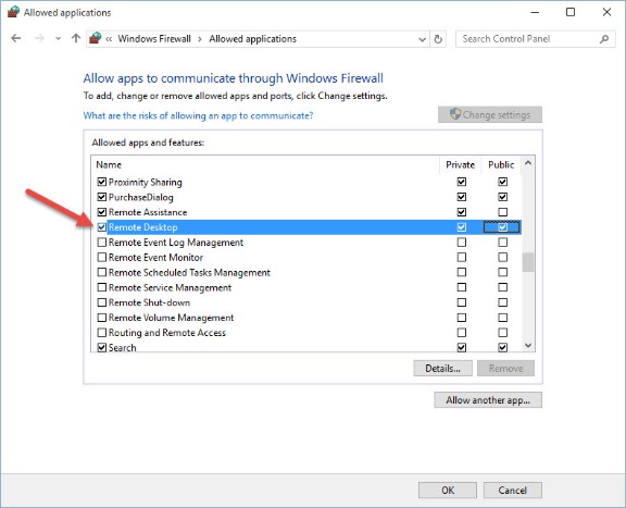 1. Firstly, to start we’ve to enable remote access on windows 10, to do that Control Panel>Windows firewall>Allow an app or feature through windows Firewall then click change settings and enable Remote Desktop.
